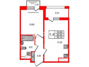 Площадь квартиры: 36.9 м2.