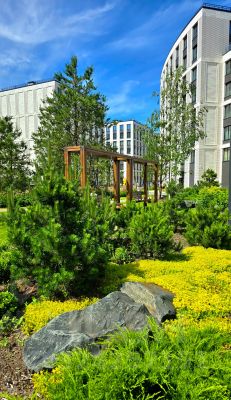 Вот некоторые достоинства дома: Лаконичные фасады облицованы терракотовыми панелями цвета травертин в сочетании с натуральным камнем, придают благородства и статусность. Многоуровневый контроль доступа и круглосуточное видеонаблюдение гарантируют безопасность. Гостей и курьеров в центральной входной группе встретит консьерж и служба охраны. В парадной есть колясочная, удобные пандусы без ступеней, входная дверь открывается автоматически (очень удобно, когда руки заняты). Парадный холл и лобби оформлены в стиле ар-деко, который дополняет безупречный облик. Отделка под мрамор, сочетание фактур, авторский дизайн. Вдоль парковой аллеи, ведущей от центрального входа к набережной, высажены десятки видов растений. Здесь приятно гулять с детьми или просто отдохнуть в тени деревьев, а можно дойти до новой набережной вдоль жилого комплекса (которую облагородили в летом 2024) и любоваться Малой Невой и проплывающими яхтами и другими водными транспортными средствами. Для семей с детьми имеется детская площадка с травмобезопасным покрытием, отельно предусмотрено место для спортивных занятий на свежем воздухе, также имеются лежаки для принятия солнечных ванн...