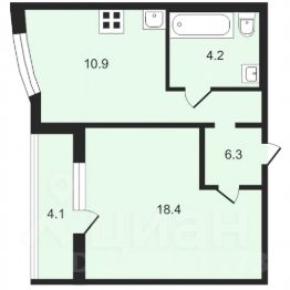 • Общая площадь 39,8 м², жилая — 18.4 м², кухня 10.9м²