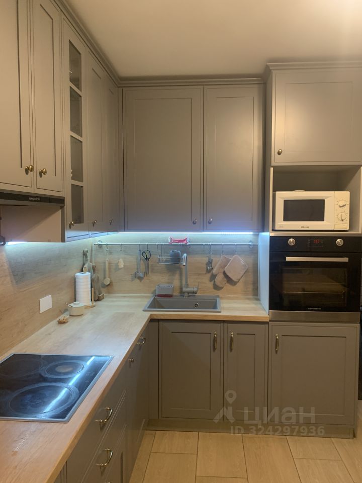 Кухня: 11.2 кв.м., большая правильной формы, керамогранит, дорогие обои, кухня IKEA(посудомоечная машина, варочная панель, духовой шкаф), холодильник Samsung, система очистки воды.