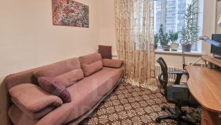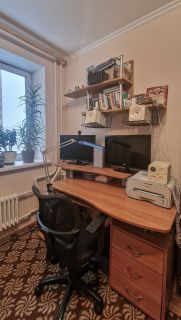 Квартира расположена на 12 этаже. Хороший вид из квартиры на улицу. Общая площадь 76, 6 кв. м., три изолированные комнаты: гостиная с эркерными окнами (17,3 кв.м.), спальня (14,5 кв. м.), спальня (11,4 кв.м.). Кухня правильной формы (10,8 кв.м.), в прихожей большая гардеробная с системами хранения, 2 санузла один из них с ванной, где установлен бойлер на 30 литров, другой санузел гостевой туалет, на лоджии (5,7 кв.м.) установлены дополнительные стеклопакеты и теплый пол.