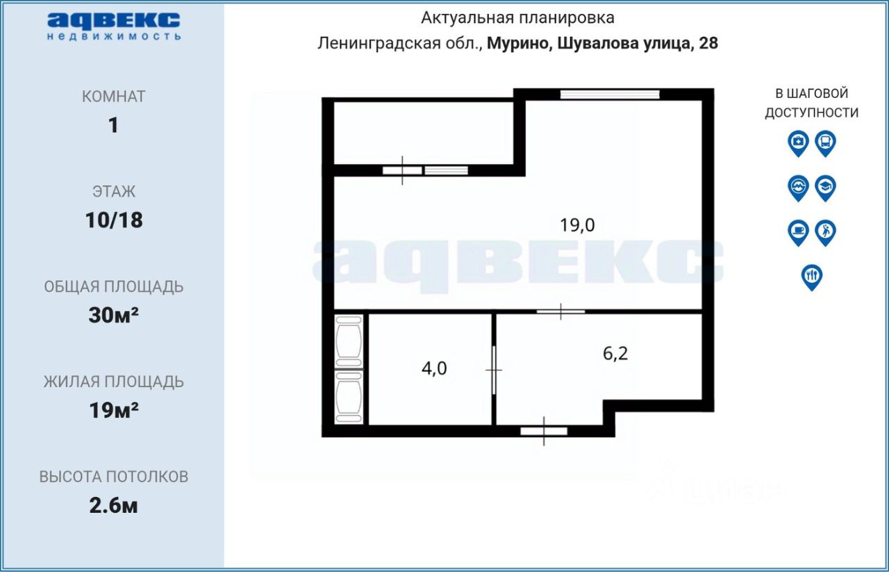 19 м²