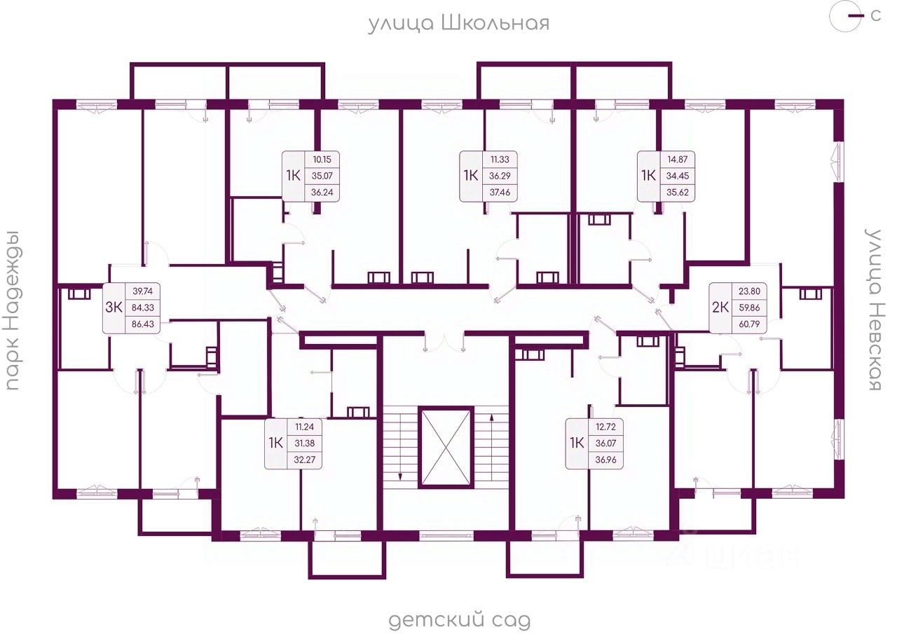 Жилая площадь 39.74 м2, кухня 18.16 м2. Площадь комнат: 11.39/12.37/15.98 м2, квартира без отделки, балконов - 1, окна выходят во двор и на улицу.