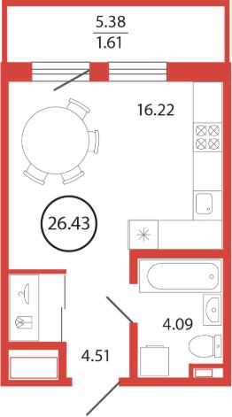Продаётся студия в жилищном комплексе "Энфилд" (корпус Дом 18 секция 5). Общая площадь 26,43 кв. м, площадь комнат 16,22 кв.м. Санузел. Квартира расположена на 8 этаже 12 этажного дома. Срок сдачи корпуса IV квартал 2027 года.