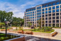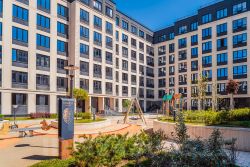 Дворовая территория закрыта от машин и посторонних. За порядком и безопасностью следит круглосуточная охрана и камеры видеонаблюдения. На территории комплекса есть спортивные и детские площадки, ландшафтное озеленение и собственная зона променада. В первом корпусе расположен детский сад на 100 мест., а на первых этажах вдоль Петровского проспекта есть коммерческие помещения для магазинов, ресторанов, кафе. Всего в 700 метрах от жилого комплекса расположен Петровский парк, идеально подходящий для прогулок и отдыха.