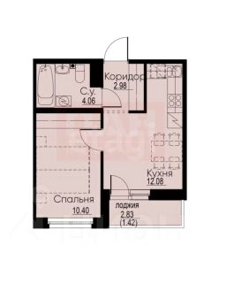 Планировка отличается продуманностью: изолированная комната 10,40 м² обеспечивает уединение, а просторная кухня-гостиная 12,08 м² объединена с застекленной лоджией 2,83 м², формируя светлое и функциональное пространство для отдыха.