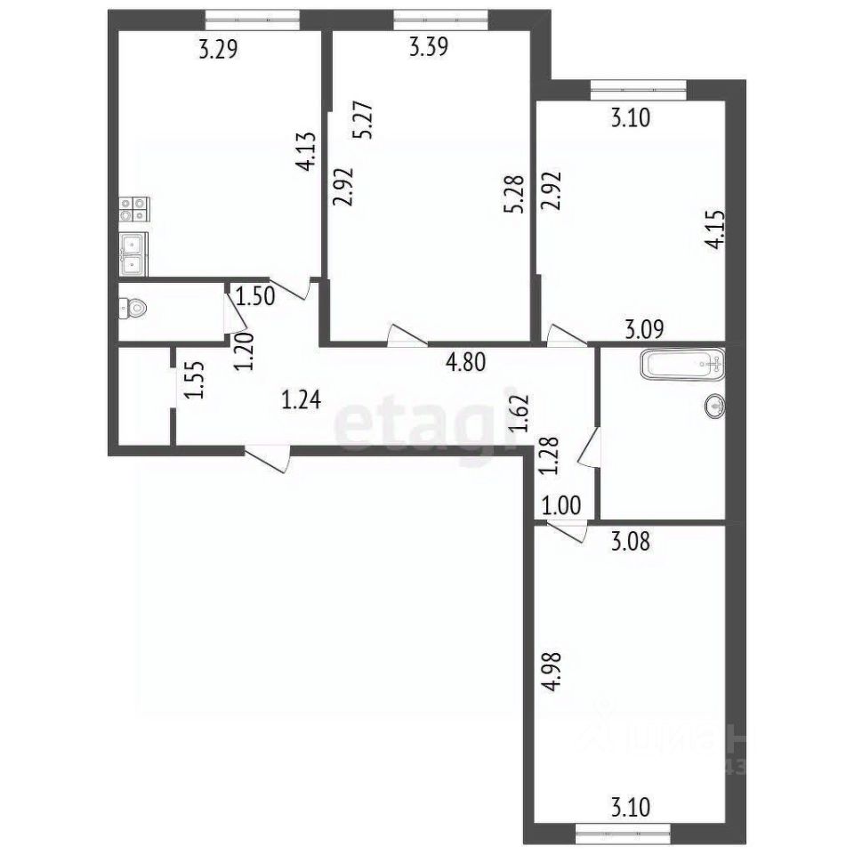 Совмещенный сан.узел- 6 кв.м.