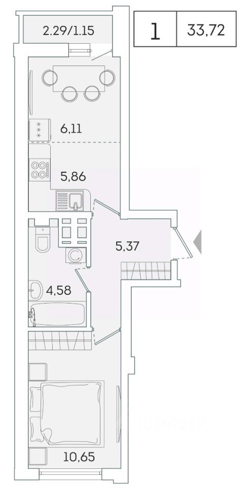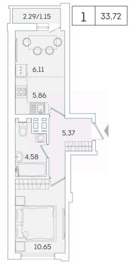 В продаже от застройщика 1 комнатная квартира 32.8 кв. м с черновой отделкой и практичной планировкой для удобной организации пространства. Корпус сдан, идет выдача ключей.
