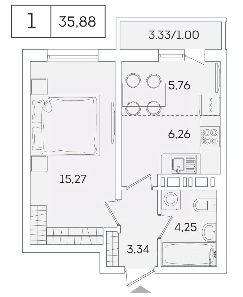 В продаже от застройщика 1 комнатная квартира 35 кв. м с черновой отделкой и практичной планировкой для удобной организации пространства. Корпус сдан, идет выдача ключей.