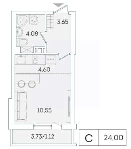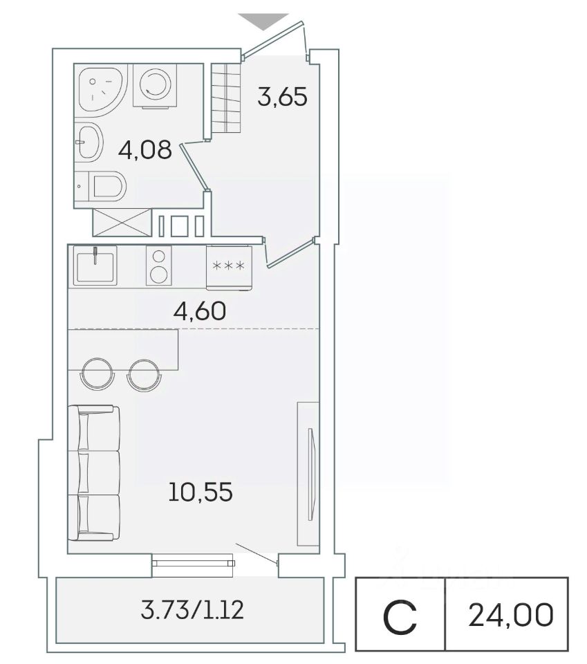 В продаже от застройщика студия 22.9 кв. м с черновой отделкой и практичной планировкой для удобной организации пространства. Корпус сдан, идет выдача ключей.