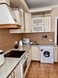 Наполнение квартиры : кухонный гарнитур, техника ( стиральная машина, посудомоечная машина, варочная панель, телевизор ), остается покупателю.
