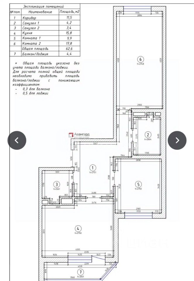 *Два санузла — один с ванной, другой с душевой кабиной;