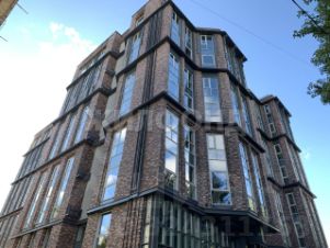 Облик дома выполнен по проекту мастерской Liрhаrt Аrсhitесts в стиле кирпичного арт-деко с элементами лофта. В отделке фасадов применяется натуральный облицовочный керамический кирпич бордового оттенка. В темное время суток предусмотрена архитектурная подсветка здания. Входы в секции организованы со стороны внутриквартальных проездов. В местах общего пользования выполнена дизайнерская отделка по индивидуальному проекту. В холлах на 1 этаже предусмотрены места для колясок и мытья лап домашних животных. В каждой секции располагается по 4-7 квартир на этаже.