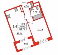 Просторная кухня площадью 17,44 кв. м станет местом для кулинарных экспериментов, а жилой площадью в 11,29 кв. м можно эффективно распорядиться с учётом ваших потребностей. Балкон добавляет уют и возможность насладиться видами во двор.