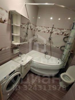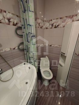 Большой совмещённый санузел отделан свежей плиткой и оборудован ванной. Не приходится жертвовать удобством в угоду метража, здесь просторно и функционально.