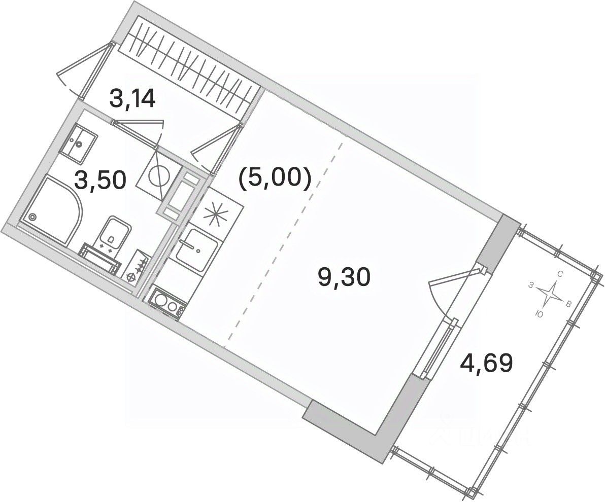 Жилая площадь9,3 м²