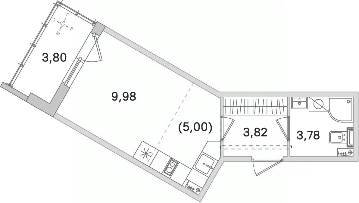 Общая площадь22,58 м²
