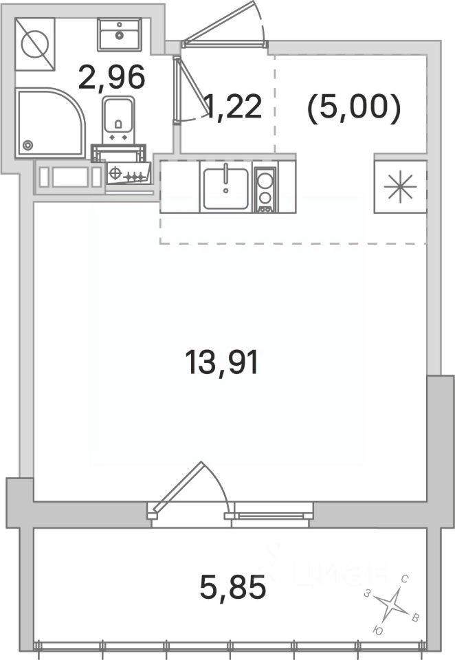 Общая площадь23,09 м²
