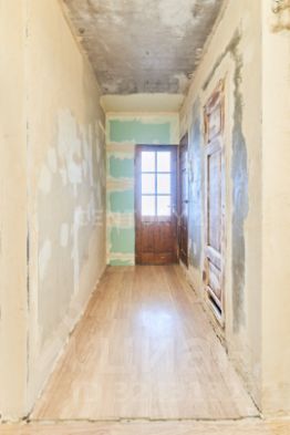 Стены в коридоре отремонтированы и подготовлены под новый ремонт