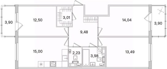 Площадь кухни15 м²
