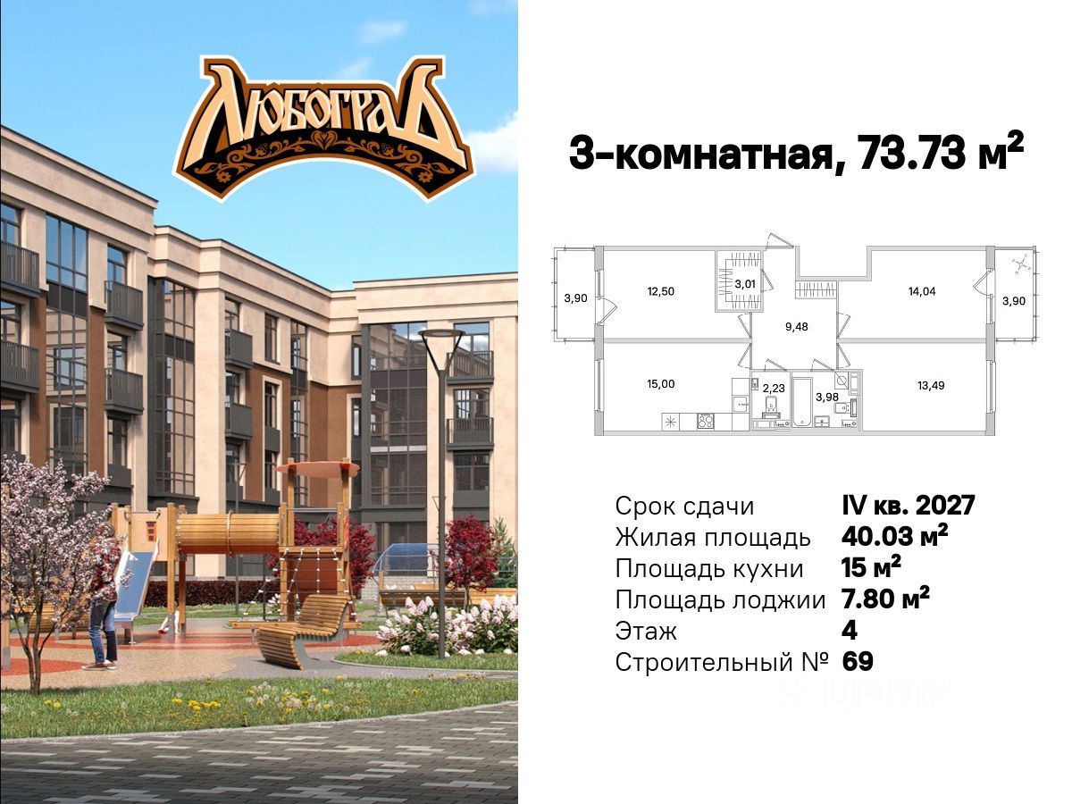 Общая площадь73,73 м²