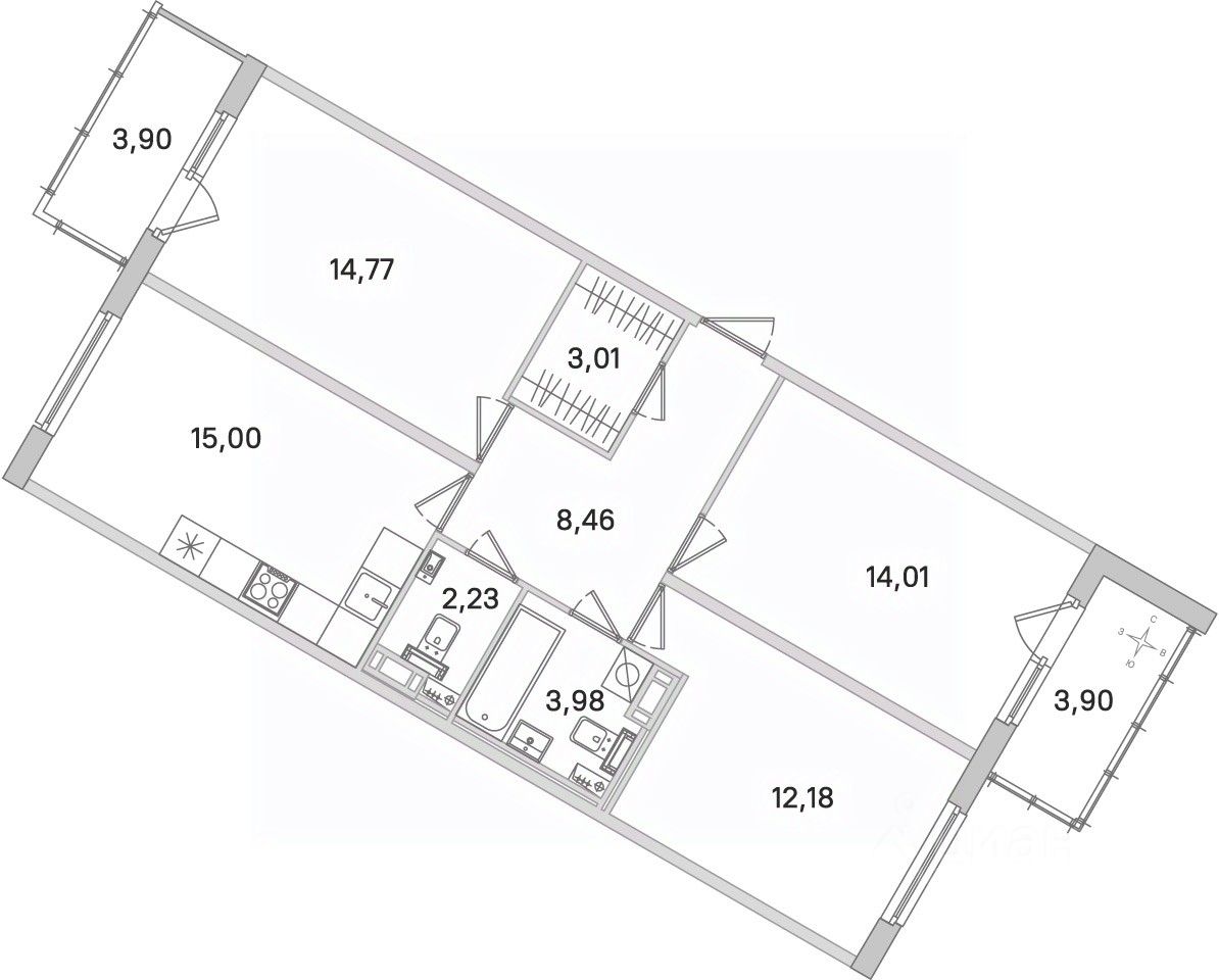 Площадь кухни15 м²