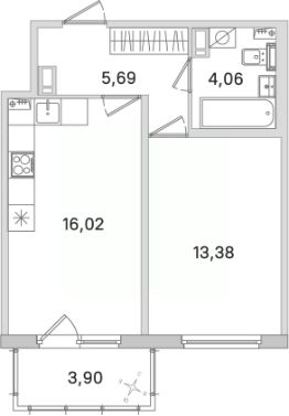 Общая площадь39,15 м²