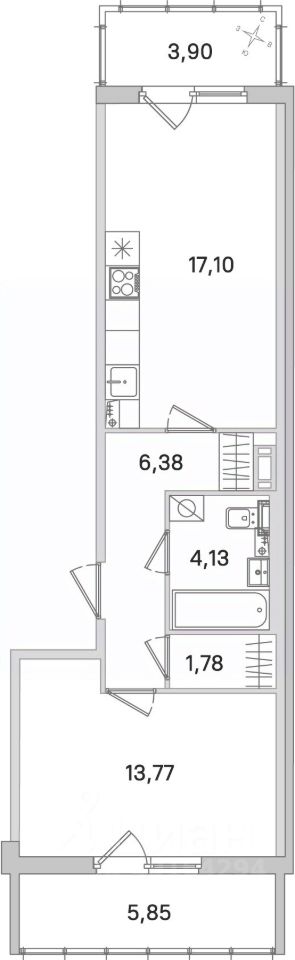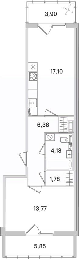 Площадь кухни17,1 м²