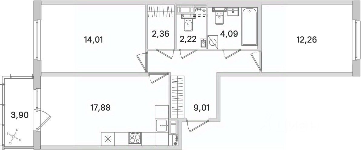 Площадь кухни17,9 м²