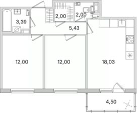 Общая площадь54,85 м²