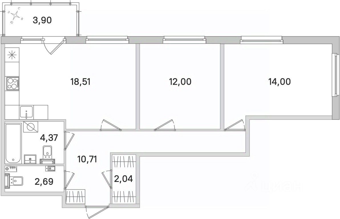 Площадь кухни18,5 м²