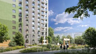 Между домами будут устроены бульвары, пешеходные и велодорожки, игровые и спортивные площадки, зоны отдыха для детей и взрослых. На первых этажах находятся колясочные, магазины, кафе и сервисные службы.