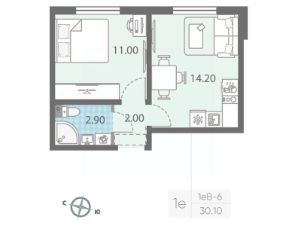 Продается 1-комнатная квартира в ЖК "ЛСР. Ржевский парк" на 1 этаже. Общая площадь составляет 30.10 кв. м. Квартира с чистовой отделкой. Жилой комплекс "ЛСР. Ржевский парк" располагается по адресу Ленинградская область, Всеволожский район, Ковалёво пос..