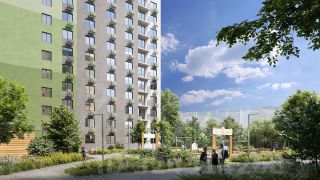 Между домами будут устроены бульвары, пешеходные и велодорожки, игровые и спортивные площадки, зоны отдыха для детей и взрослых. На первых этажах находятся колясочные, магазины, кафе и сервисные службы.