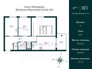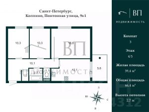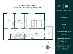 - 3 изолированные комнаты 18,8 м², 10,3 м² и 10,3 м² .