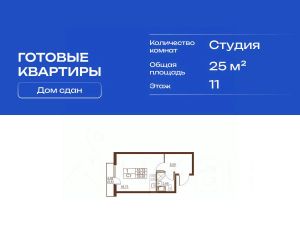 Продается готовая квартира студия в жилом комплексе Полет от ГК СТОУН нa 11 этаже. Общaя площадь cоcтaвляeт 25.00 кв. м.
