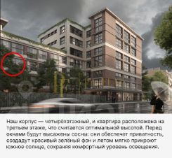 - Расстояние до соседнего здания более 26 м, а фактически - до 40 м, потому что окна попадают ровно в зазор между корпусами.