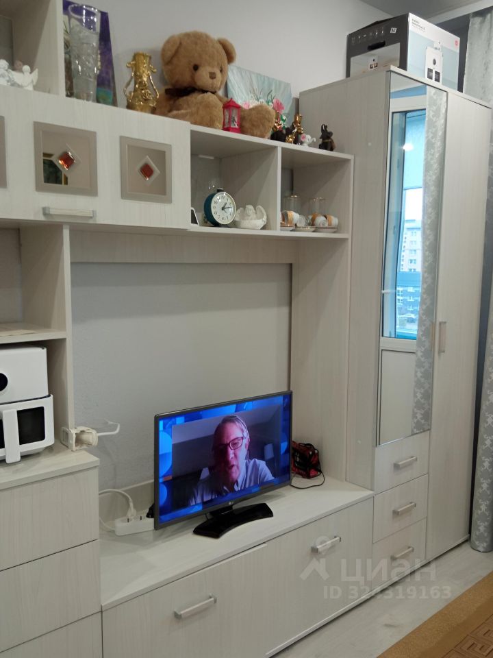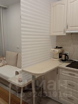 Квартира в отличном состоянии, с новым ремонтом. Удобная планировка, кухня визуально отделена от жилой части студии. Балкон, застеклённый и утеплённый, представляет собой небольшую комнатку, в которой летом можно отлично отдыхать. Высокие окна во всю стену, через которые студию заливает свет. Большую часть дня в квартире светло, прямое солнце в первой половине дня. За окнами школа и футбольное поле, т.е. не появятся новые здания и не закроют свет. При этом шума от детей нет, т.к. квартира на 6 этаже. В квартире остаётся вся мебель, новая и светлая, что делает возможным быстрый въезд и комфортное проживание. Санузел чистый и светлый, с современной сантехникой, тропический душ.