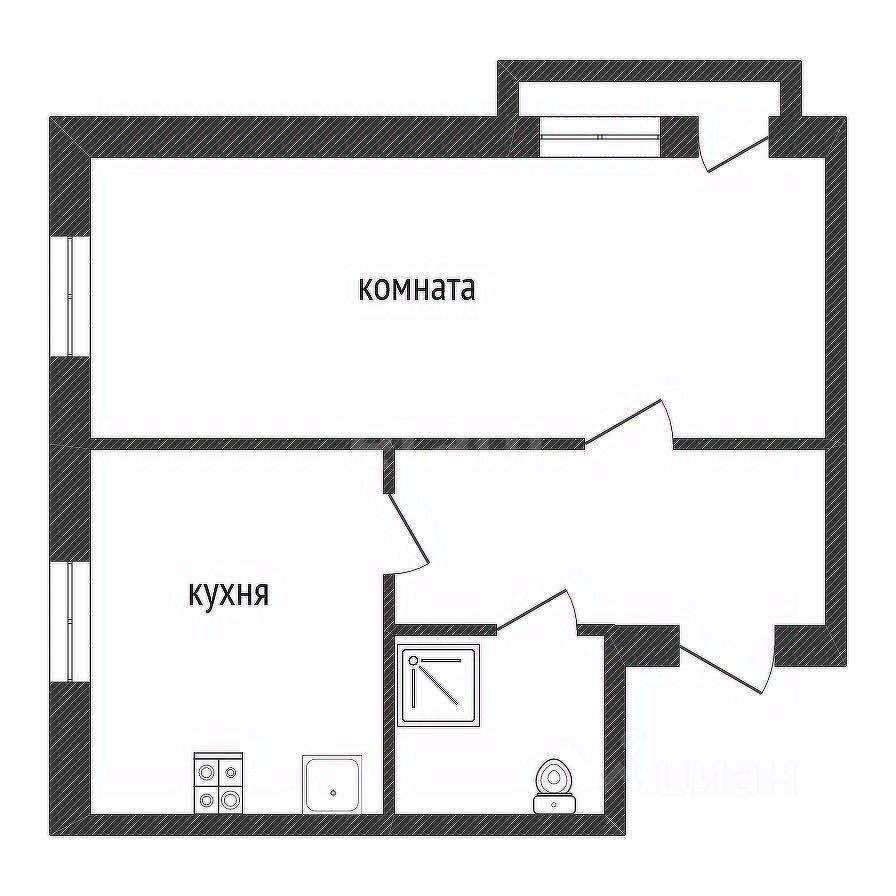 Общая площадь квартиры составляет 32 кв.м., включая светлую комнату и удобную кухню площадью 8 кв.м.