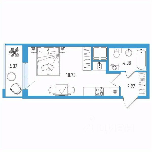 Продаётся студия в строящемся доме (Дом 1), срок сдачи: II-кв. 2027, общей площадью 27.03 кв.м., на 5 этаже.
