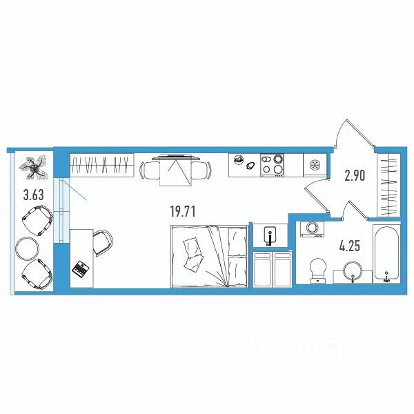 Продаётся студия в строящемся доме (Дом 1), срок сдачи: II-кв. 2027, общей площадью 27.95 кв.м., на 9 этаже.