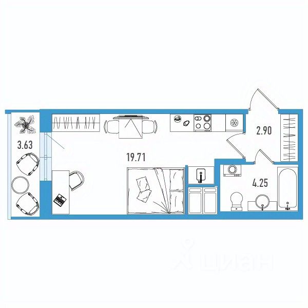 Продаётся студия в строящемся доме (Дом 1), срок сдачи: II-кв. 2027, общей площадью 27.95 кв.м., на 10 этаже.