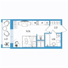Продаётся студия в строящемся доме (Дом 1), срок сдачи: II-кв. 2027, общей площадью 24.48 кв.м., на 8 этаже.