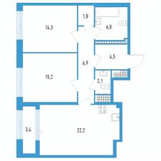Продаётся 2-комнатная квартира в строящемся доме (Секции 15 и 16), срок сдачи: IV-кв. 2025, общей площадью 74.7 кв.м., на 18 этаже.