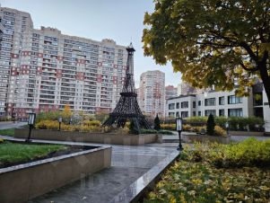 Эйфелевой башни. Рядом с этими памятниками проложены мощеные пешеходные дорожки, выделены места для детской площадки, зоны отдыха со скамейками. В темное время суток есть декоративная подсветка. Для автомобилистов "Гранд Фамилии" оборудован подземный паркинг с отоплением и лифтом. На всей внутренней территории ведется видеонаблюдение. В доме работают консьерж и охрана.