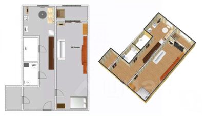 Общая площадь: 39,4 кв.м, кухня — 7,5 кв.м, комната — 16,9 кв.м.