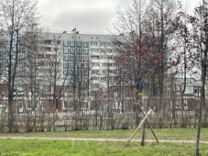 Благоустроенная придомовая территория: дом утопает в зелени, в квартире тихо, утром и вечером слышно пение птиц.