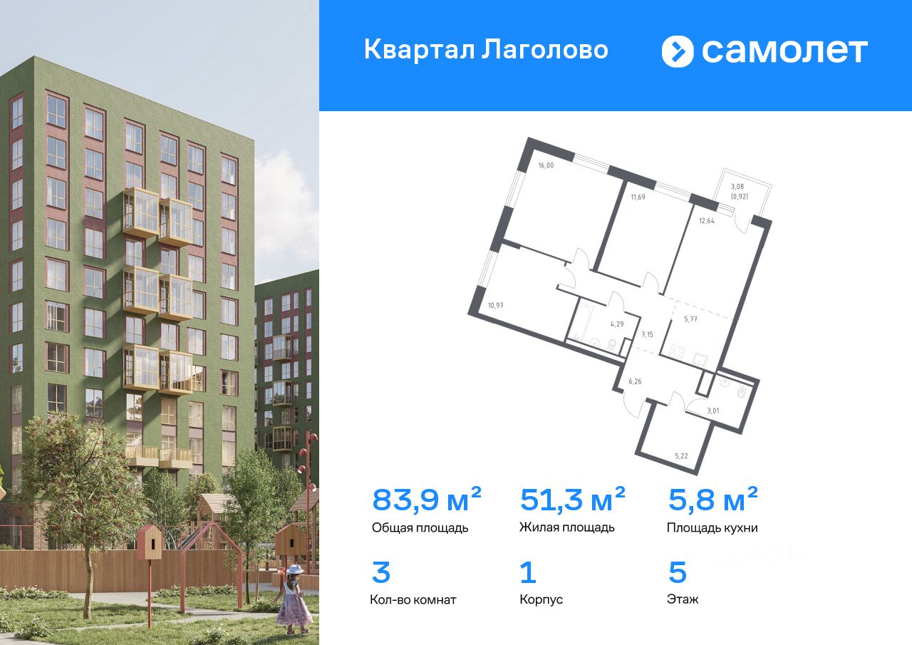 Строим кварталы для жизни с заботой о будущем. Предлагается 3-комнатная квартира комфорт-класса 83,92 кв.м в корпусе 1 на 5 этаже, в ЖК "Квартал Лаголово"