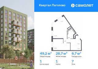 Строим кварталы для жизни с заботой о будущем. Предлагается 1-комнатная квартира комфорт-класса 49,18 кв.м в корпусе 1 на 7 этаже, в ЖК "Квартал Лаголово"