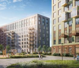 Дома высотой до 11 этажей с панорамными балконами выполнены в скандинавском стиле.